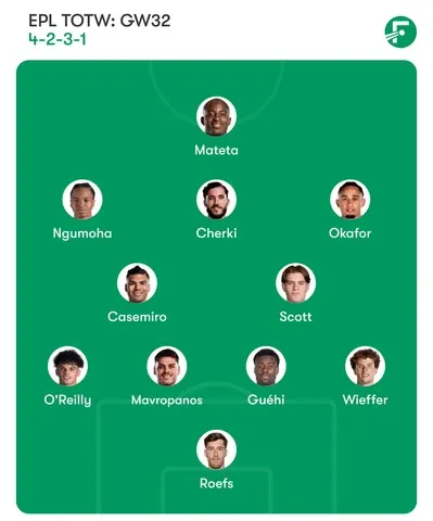 This was our best team for Gameweek 32 of the Premier League. In summary, the Gameweek 32 Team of the Week highlights the depth of quality and competitiveness that defines the Premier League. The selected XI showcases how crucial individual brilliance, combined with effective teamwork, continues to shape outcomes across the league. Performances like these not only influence single match results but also play a significant role in the broader narrative of the season.
