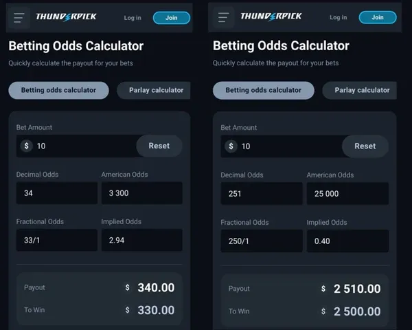 All figures calculated using screenshots from this betting tool: https://thunderpick.io/betting-calculators/betting-odds-calculator
